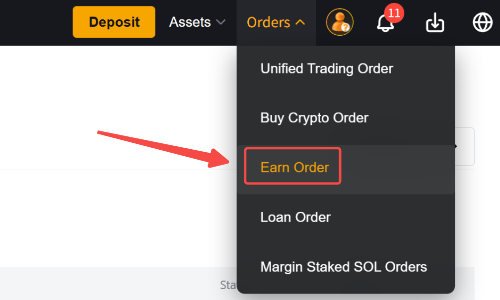 Alternatively, go to Orders in the navigation bar and click Earn Order.
