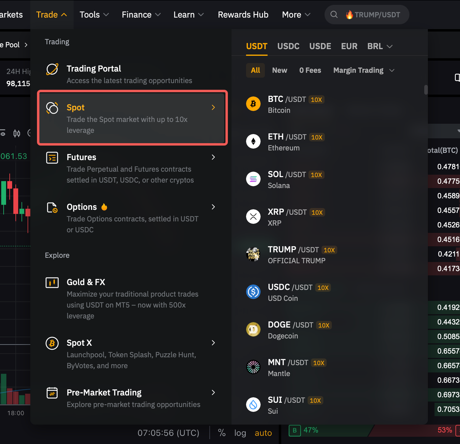 Step 1: Log into your account and click Trade → Spot in the top navigation bar to access the Spot trading page.