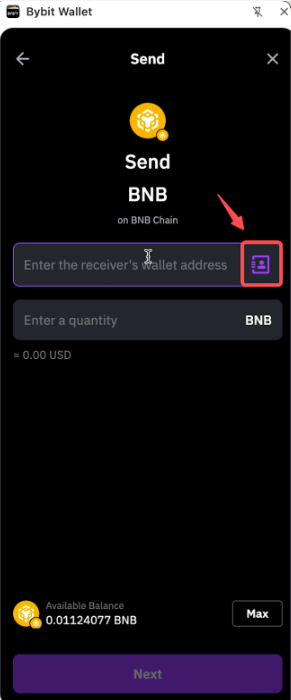 Step 2: Enter the receiving Wallet Address or select it from the Address Book.