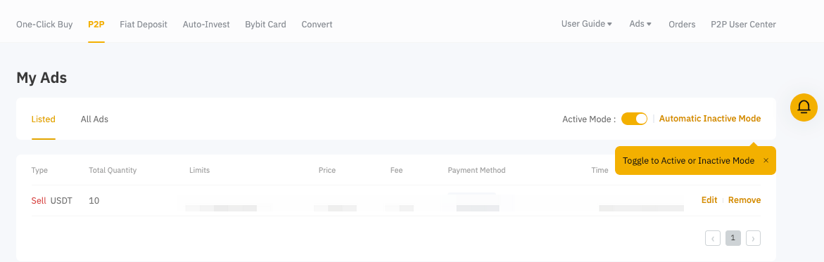 Congratulations! Your ad is now successfully listed. Please remember that advertisers are expected to be online and available to respond promptly to counterparties and engage in negotiations in a timely manner when the advertisement is in active mode. To learn more about managing the visibility of your advertising, please refer to this article.