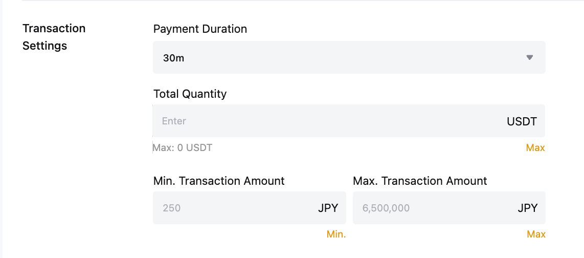 - To learn more about the minimum and maximum amounts of USDT that can be traded per ad, please refer to P2P Order Limits.