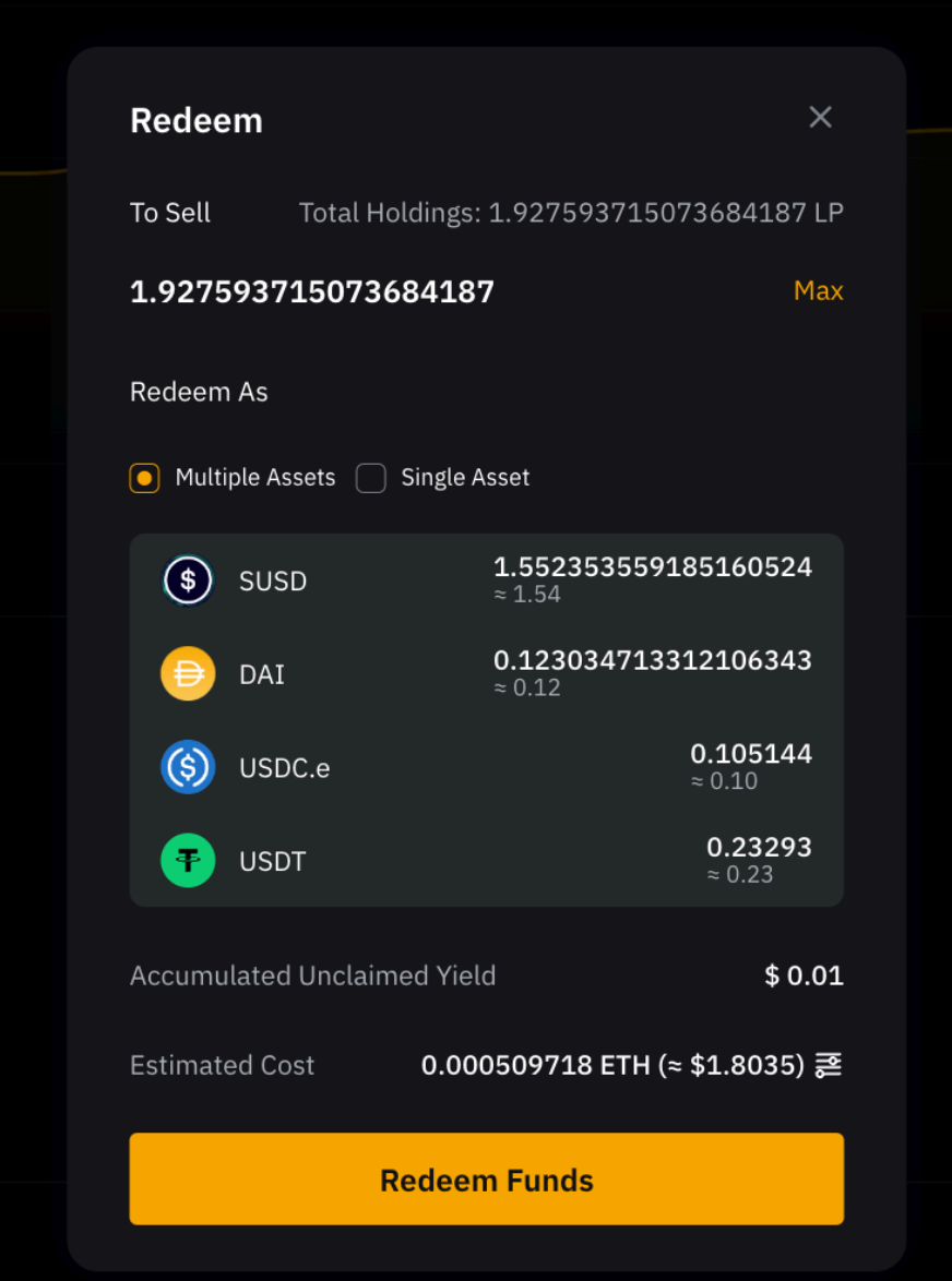 3o passo: Na janela pop-up, selecione Ativos únicos ou múltiplos, verifique os detalhes do resgate e clique em Resgatar agora.
