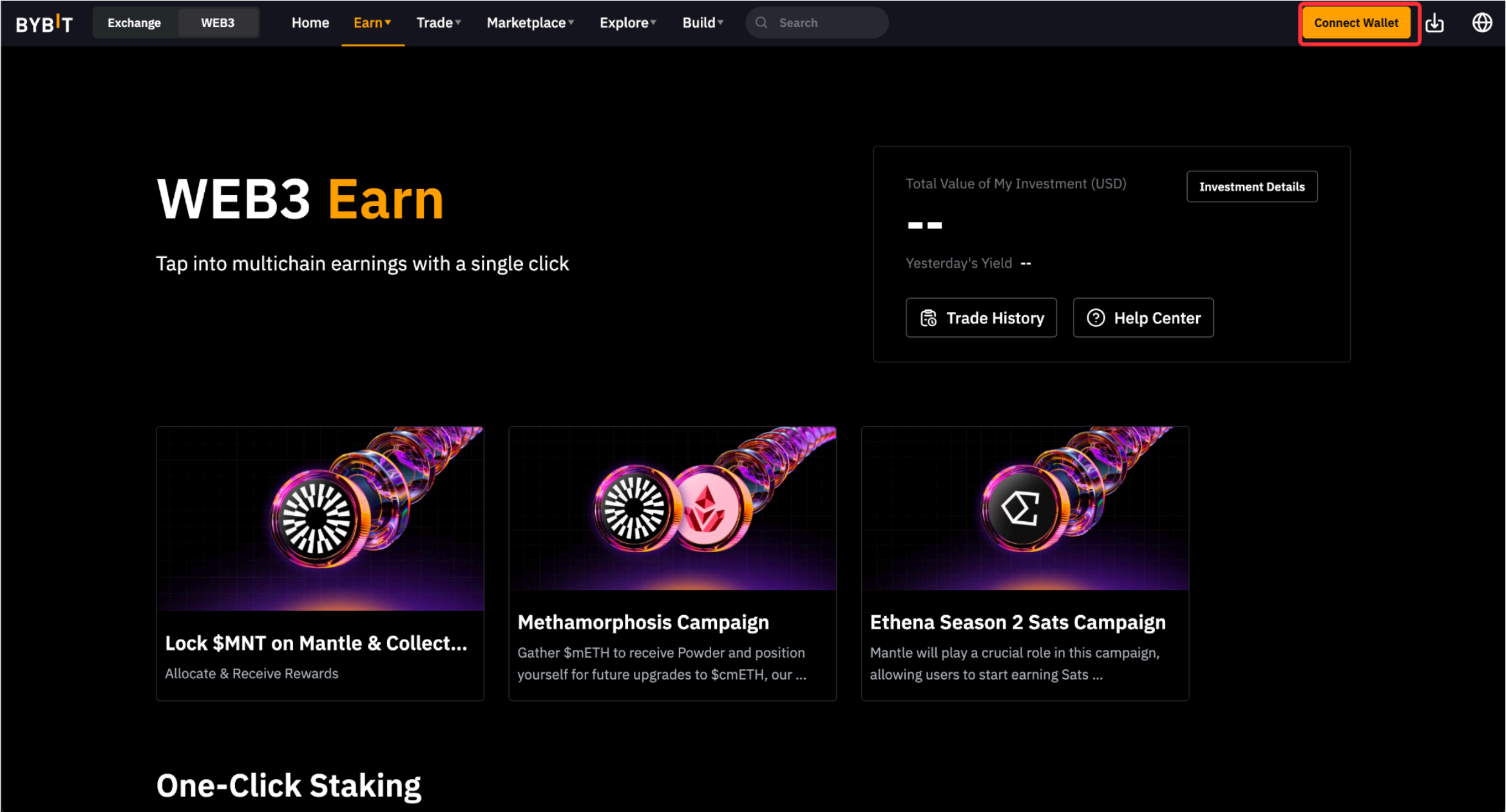 Aqui está um guia passo a passo sobre como fazer seu primeiro staking na Wallet com a Bybit Wallet no aplicativo/no site. Antes de fazer staking, você terá que criar uma Bybit Wallet e depositar os tokens de staking desejados nela.