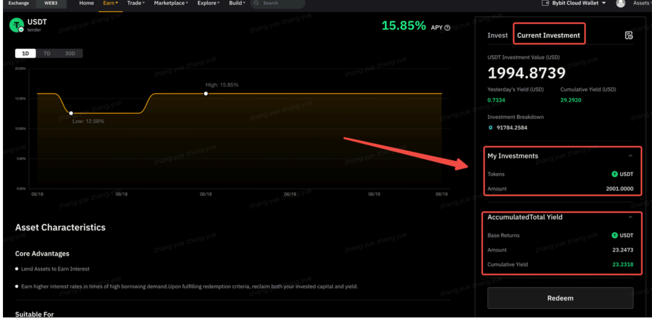 1o passo: Navegue até Wallet → Staking → Detalhes do investimento.