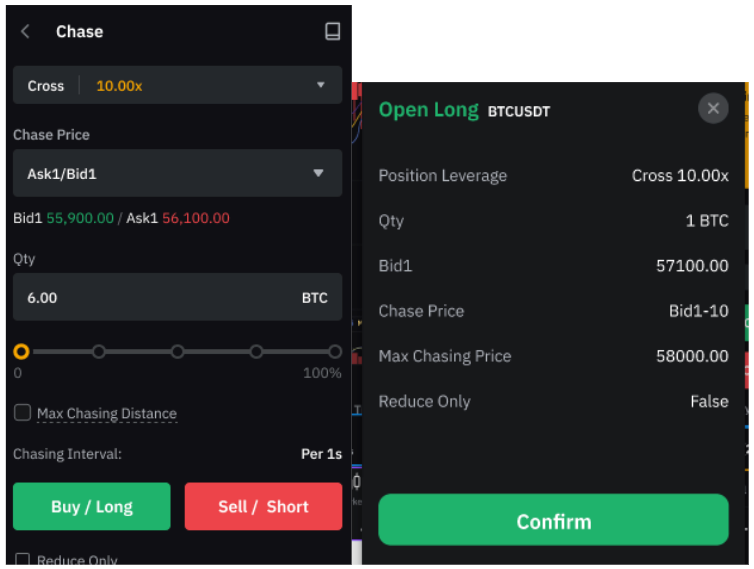 У сценарії Переслідувати Аск/Бід1 трейдери не зв’язані попередньо визначеними умовами, такими як максимальна відстань переслідування. Замість цього ордер постійно відстежуватимете ринкову ціну, коригуючись під час руху до успішного виконання або скасування замовлення.