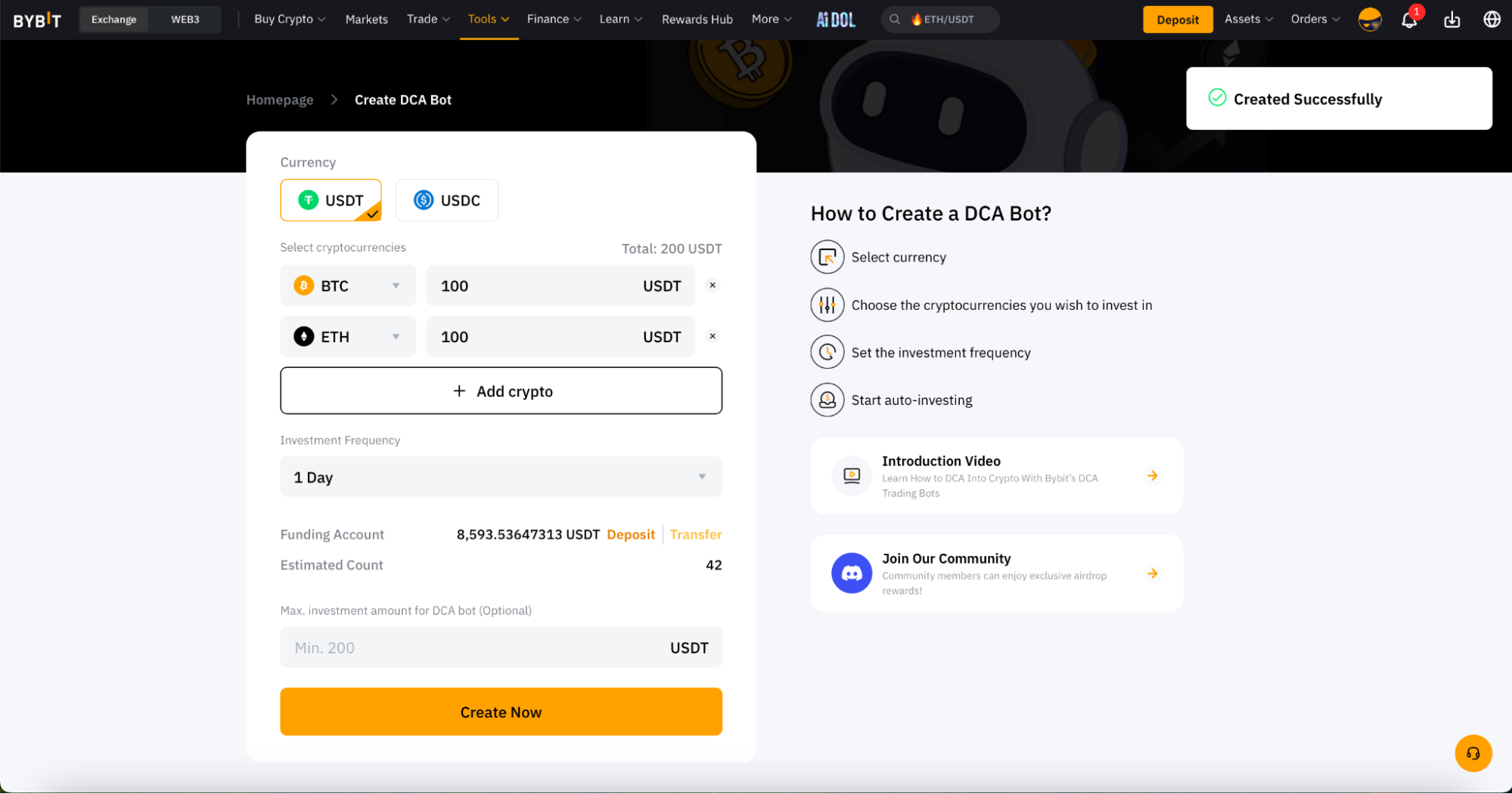 Зверніть увагу, що ваші перші інвестиції в DCA починаються з моменту успішного створення DCA-бота.