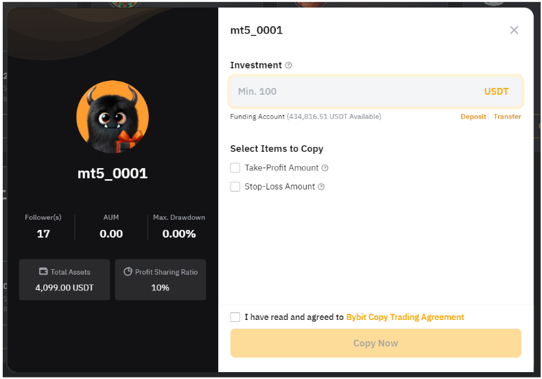 Ось покроковий посібник із копіювання вашої першої угоди TradFi на Bybit.