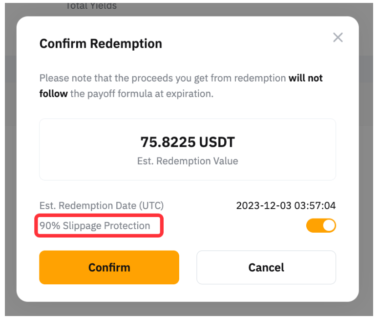 Xin lưu ý rằng bạn có thể không lấy lại được toàn bộ số tiền đã đầu tư khi nhận lại sớm. Bạn có thể tham khảo giá trị quy đổi ước tính được tính toán dựa trên điều kiện thị trường hiện tại được hiển thị trên cửa sổ xác nhận quy đổi của bạn. Số tiền quy đổi thực tế có thể có một chút khác biệt so với giá trị được hiển thị.