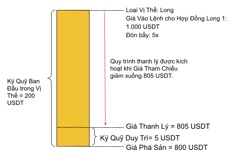 Giả sử Giá Tham Chiếu đạt đến Giá Thanh Lý, lệnh thanh lý sẽ được kích hoạt. Quy trình thanh lý diễn ra như sau: