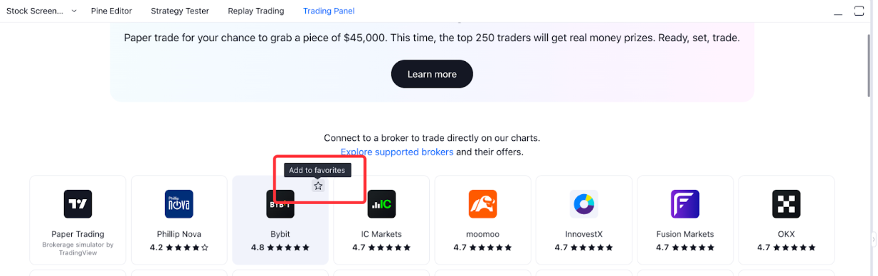 您可以将 Bybit 添加到您的经纪商收藏夹列表中,以便快速连接至 Bybit。