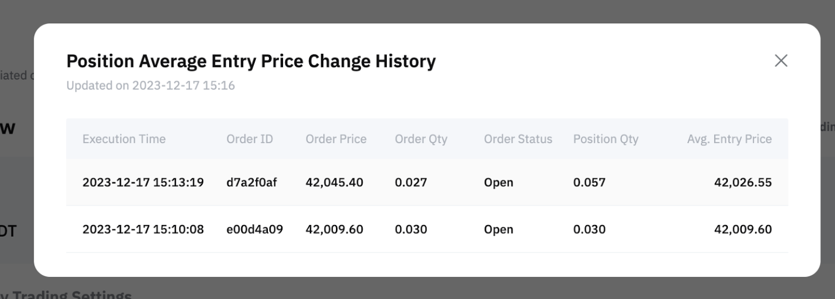请注意,持仓详情中显示的入场价格为持仓平均入场价格。 若要查看开仓价格是如何计算,您可以将光标移至未实现盈亏并点击更多信息以查看持仓平均入场价格的变化历史记录。