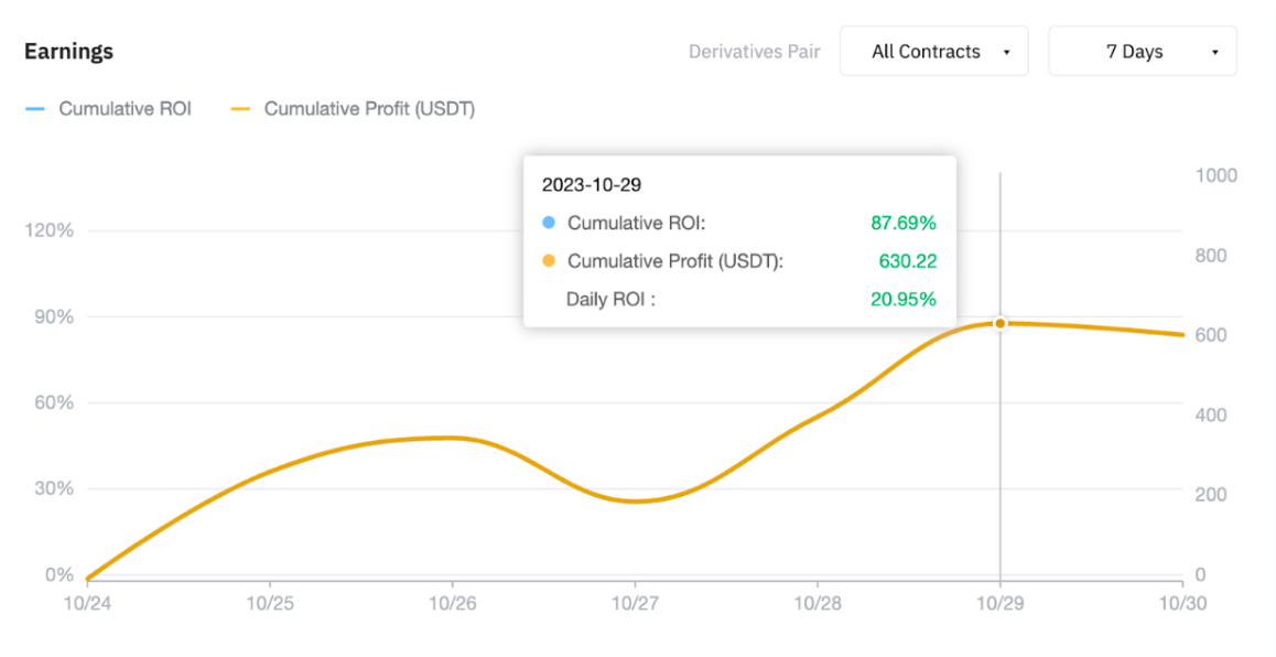 一旦跟单用户对交易达人进行跟单,其收益将实时显示在这一部分。累计跟单收益额和跟单总收益率将于每日 00:00 (UTC) 更新。