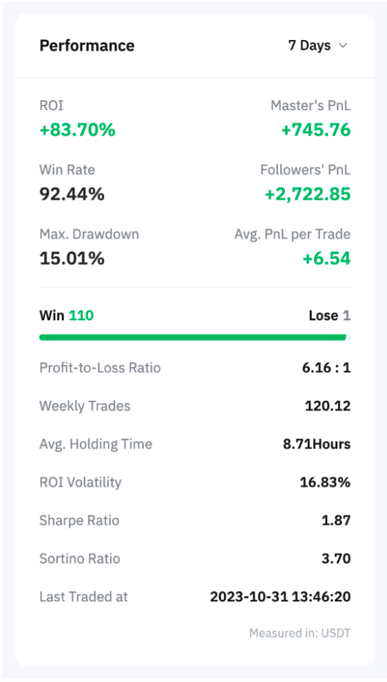 所有历史与现有跟单用户产生的总盈亏,包括已结盈亏和未结盈亏。 请注意,由于跟单用户的入场时间和价格各异,交易达人与跟单用户的盈亏可能有所出入。 |