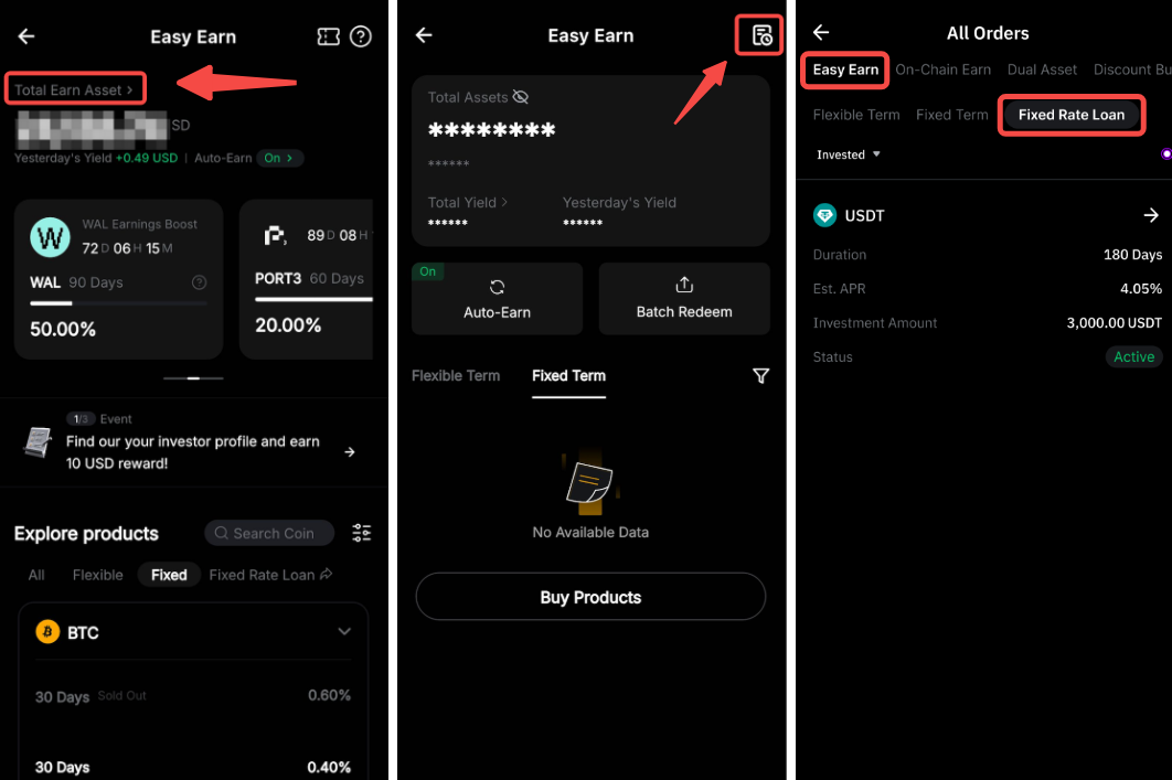 - 定期借幣(存貸易):利率在質押訂單確認時鎖定。利息據此固定利率預先收取,即使提前還款也不退還。