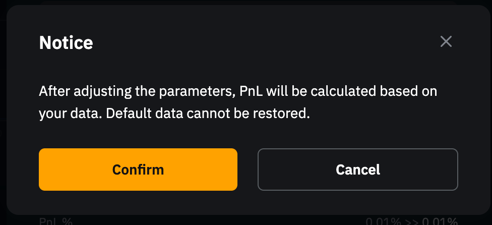 第 3 步:系統將彈出確認窗口,提示您將根據修改後的數據重新計算收益和收益率。您可在交易頁面底部資產旁的盈虧項下查看更新後的收益與收益率。請注意,修改操作不可撤銷。點擊確認以繼續。