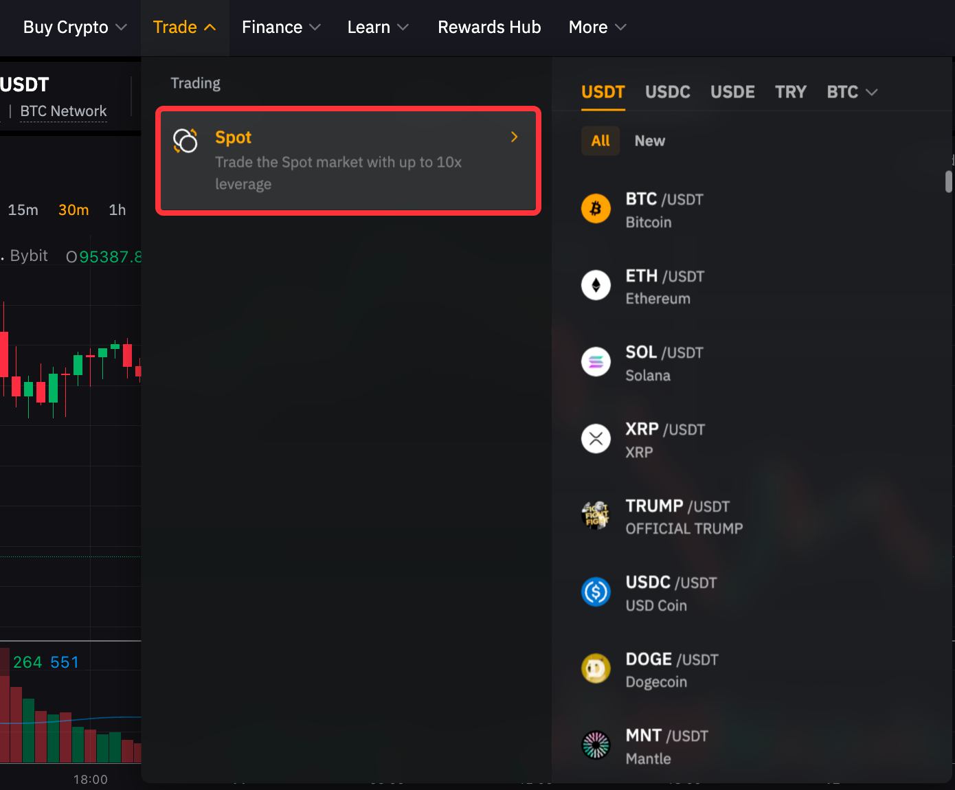 第 1 步:登錄賬戶,點擊頂部導航欄中的交易 → 現貨,進入現貨交易頁面。