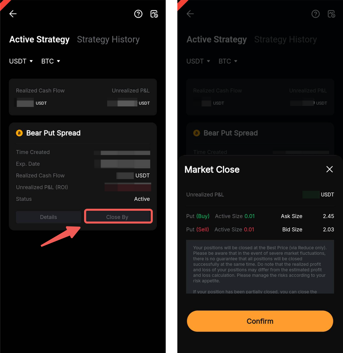 請前往目前策略頁面,然後輕觸平倉。確認所有資訊正確後,請輕觸確認。