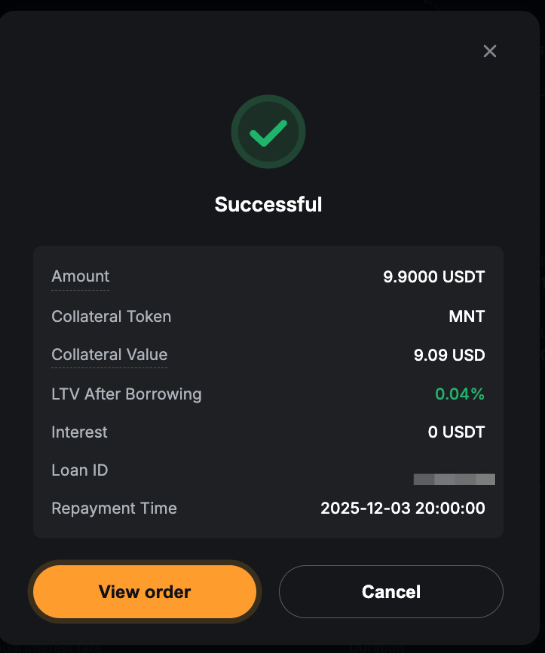 即可成功提交質押借幣訂單!