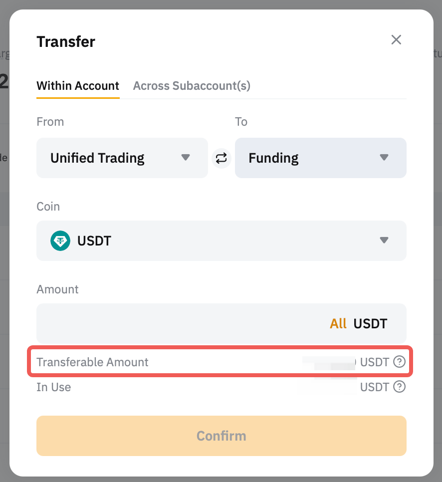- 交易者可以將資金轉移到統一交易賬戶 (UTA),用於現貨交易、槓桿交易、USDT 永續合約交易、USDC 永續和交割合約交易、反向永續合約和反向交割合約交易,以及期權交易。