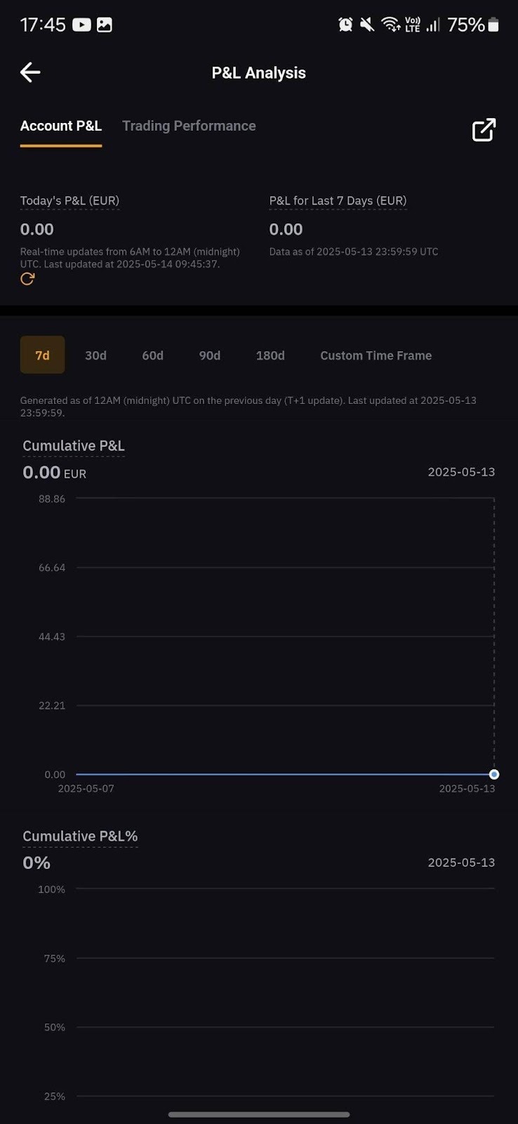 على التطبيق، انتقل إلى صفحة أصل حساب التداول الموحد وانقر على الربح والخسارة لليوم.