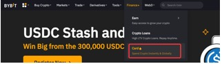 الخطوة 1: انقر على التمويل في الزاوية اليسرى العلوية من شريط التنقل في صفحة Bybit، ثم اختر البطاقة للدخول إلى صفحة بطاقة Bybit.