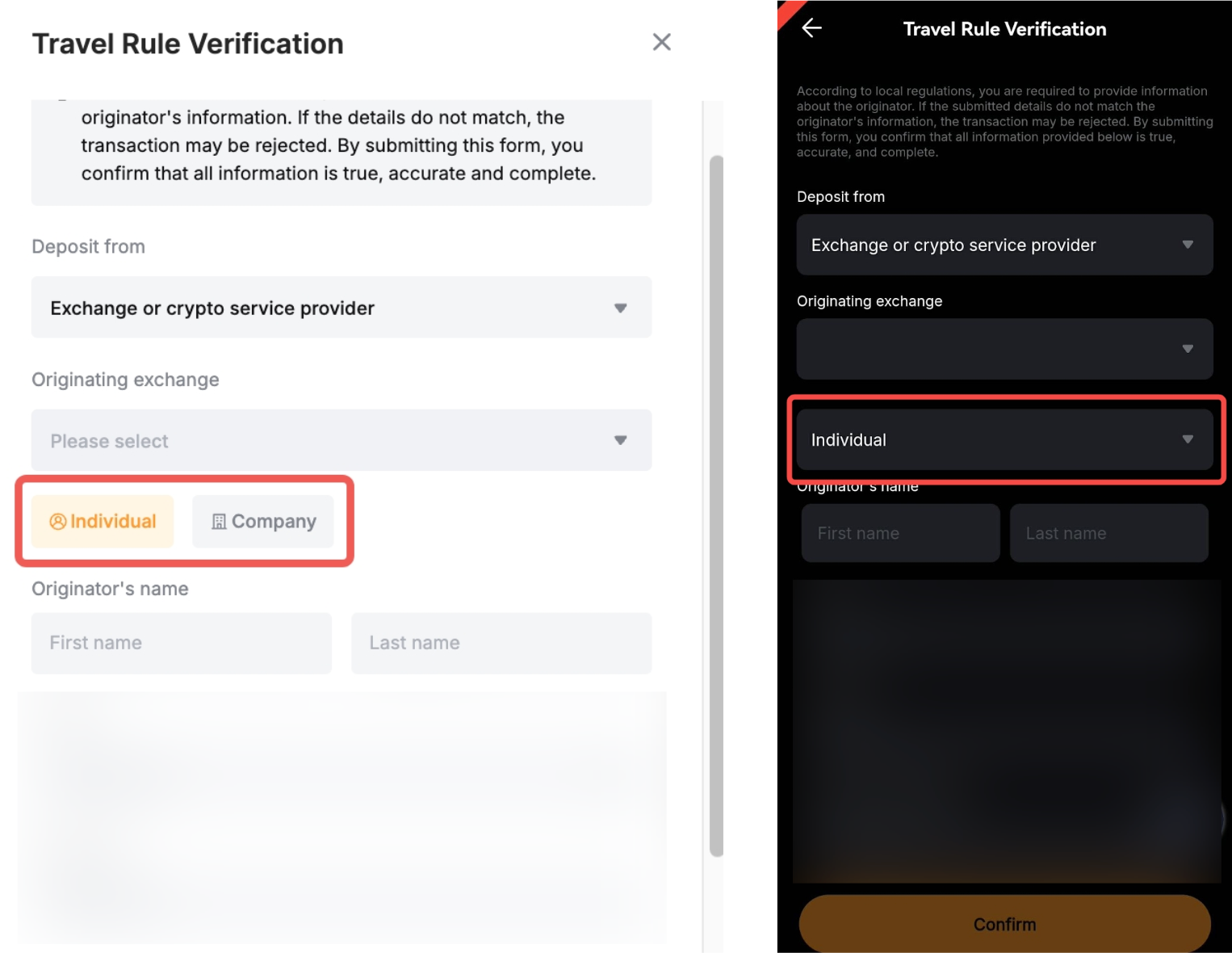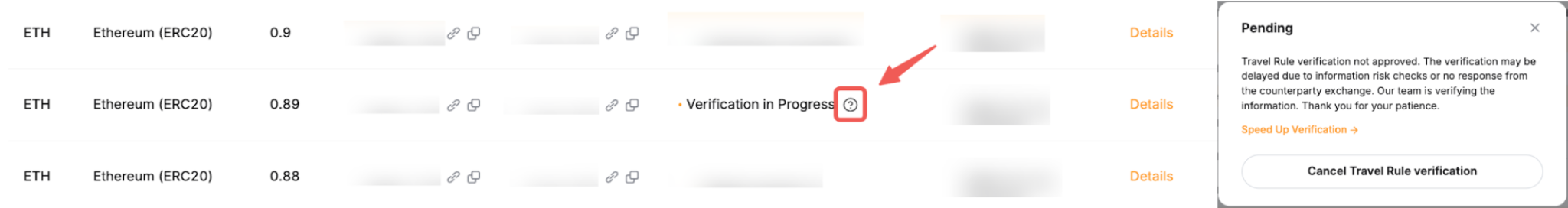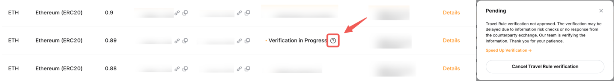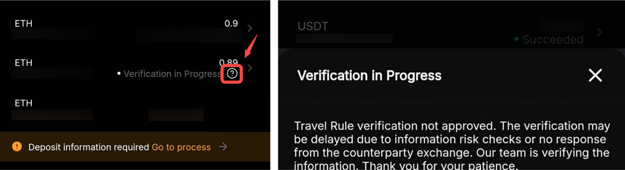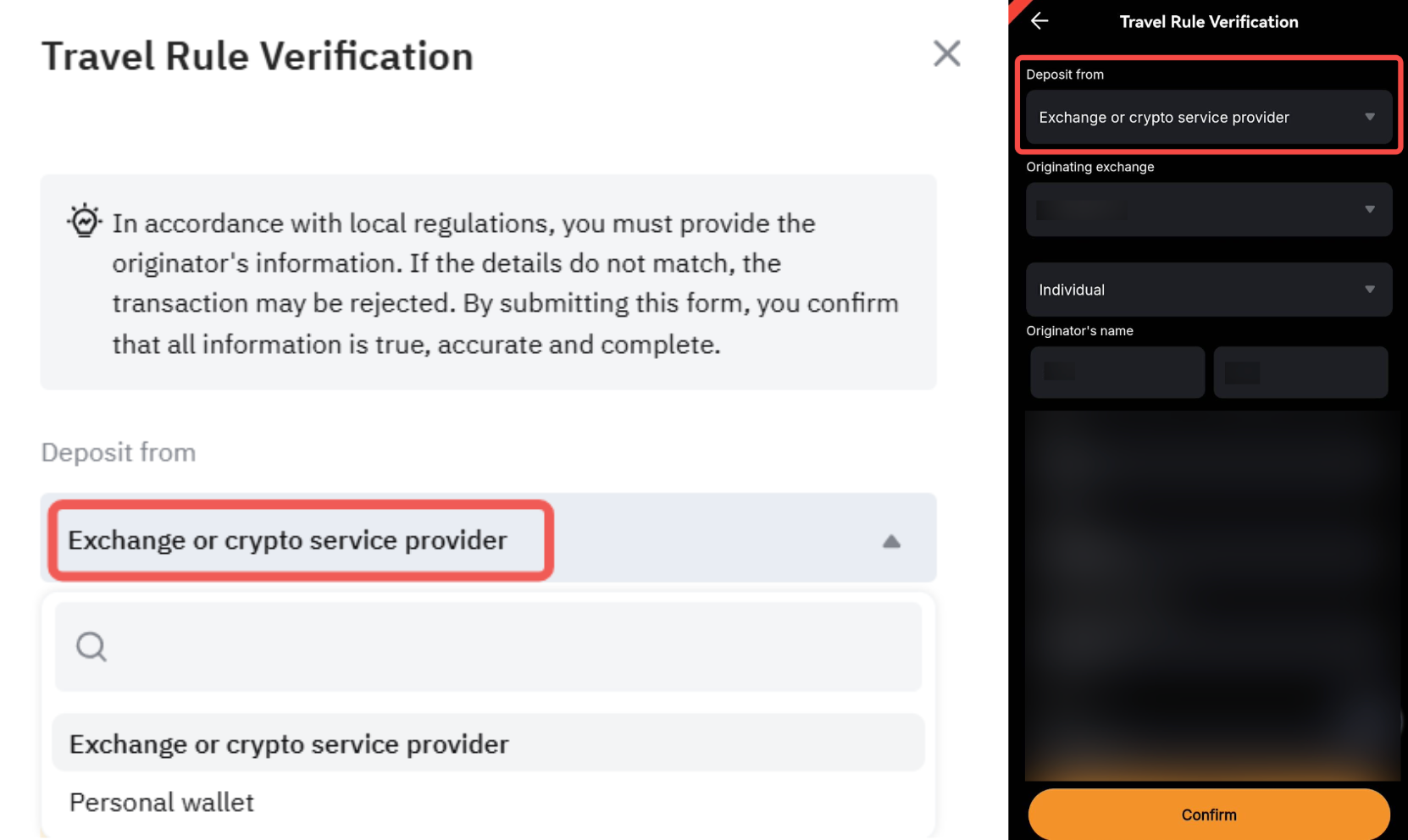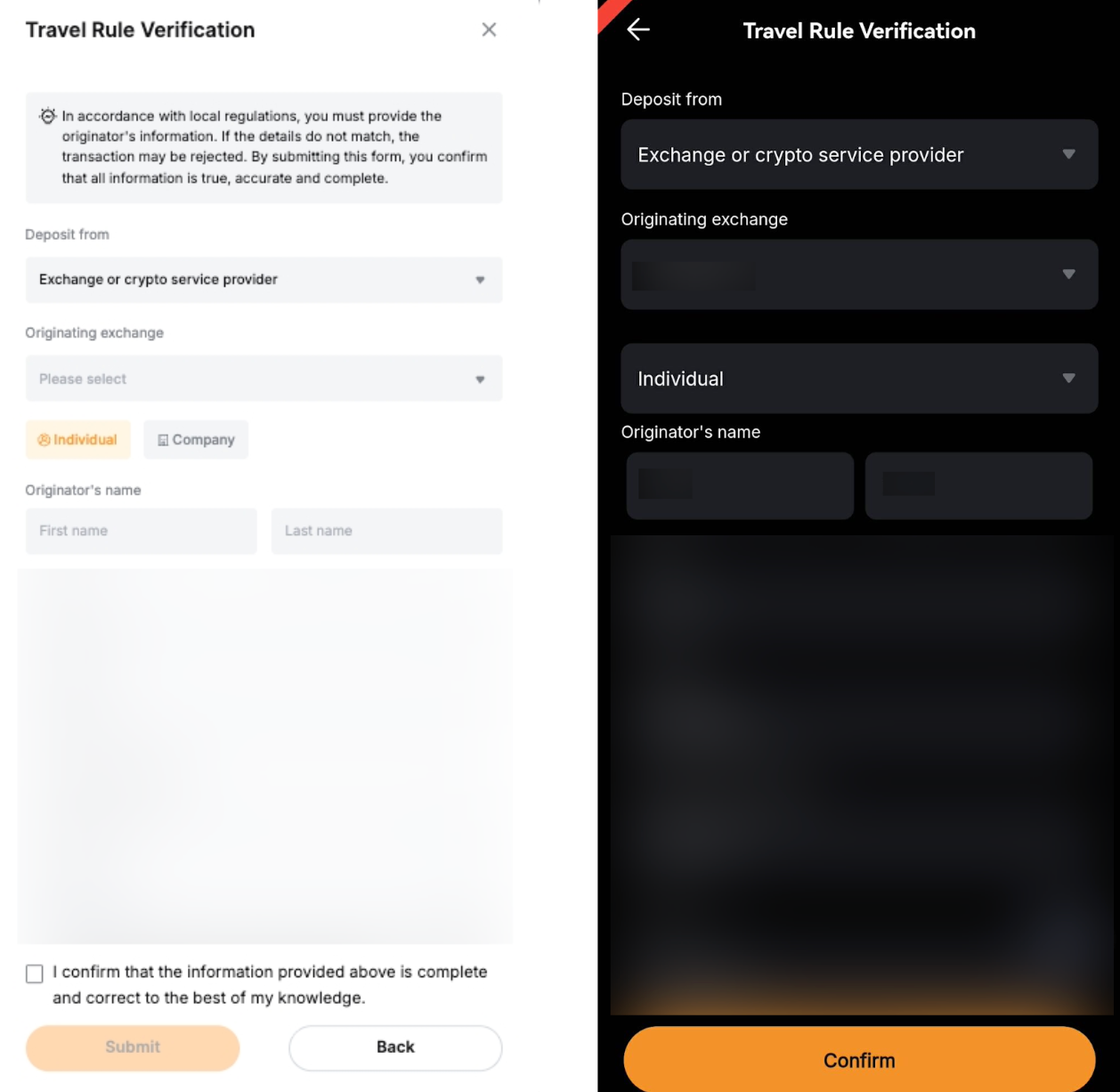 Step 3: In the Travel Rule Verification window, provide the deposit details as outlined below.