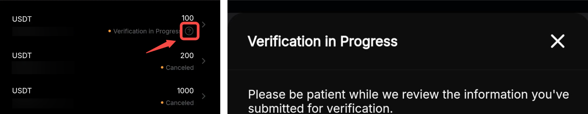 Step 4: The withdrawal status will become Pending for preliminary review. The review may take up to 30 minutes to be completed. You may click on the Help icon to view the status details.