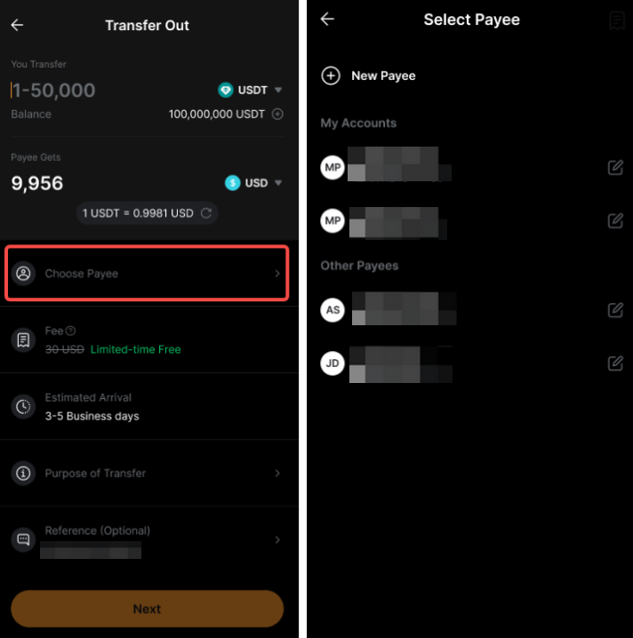 – لا يلزم أن يكون حساب البنك المستلم باسمك. عمليات التحويل إلى حسابات البنك التابعة لطرف ثالث مدعومة.