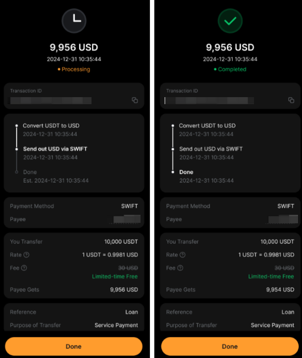 الخطوة 4: تتبع حالة التحويل في صفحة سجل الطلبات . ستتلقى إشعاراً فورياً ورسالة بريد إلكتروني بمجرد اكتمال عملية التحويل.
