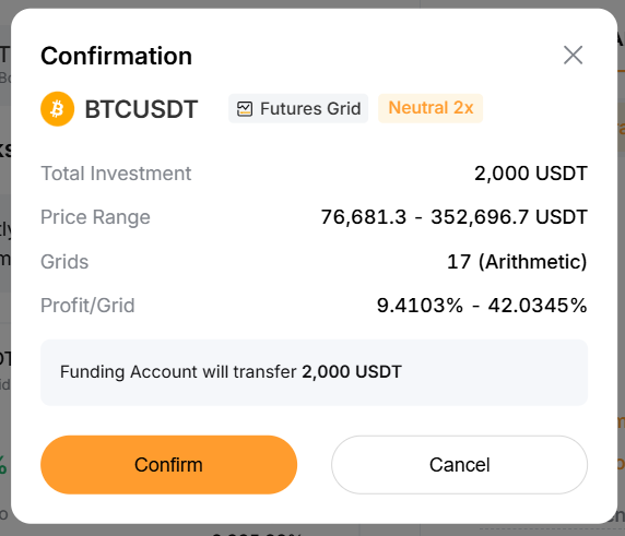 الخطوة 4: يرجى التحقق المزدوج من معلومات البوت الشبكي التي قمت بإنشائها، ثم انقر على تأكيد لبدء التداول.