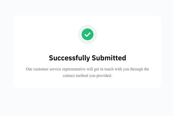 بمجرد تقديم التفاصيل، تابع لإرسال طلبك. سيقوم قسم دعم العملاء لدينا بمراجعة طلبك والاتصال بك عبر عنوان البريد الإلكتروني المسجل أو عنوان البريد الإلكتروني الذي يمكن الاتصال به. ستستغرق العملية حوالي 5-7 أيام عمل.