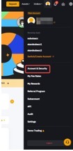 يمكنك الوصول إلى بعض إعدادات التداول بمجرد النقر على صورة ملفك الشخصي ← الحساب والأمان ← الإعدادات للوصول إلى إعدادات التداول.
