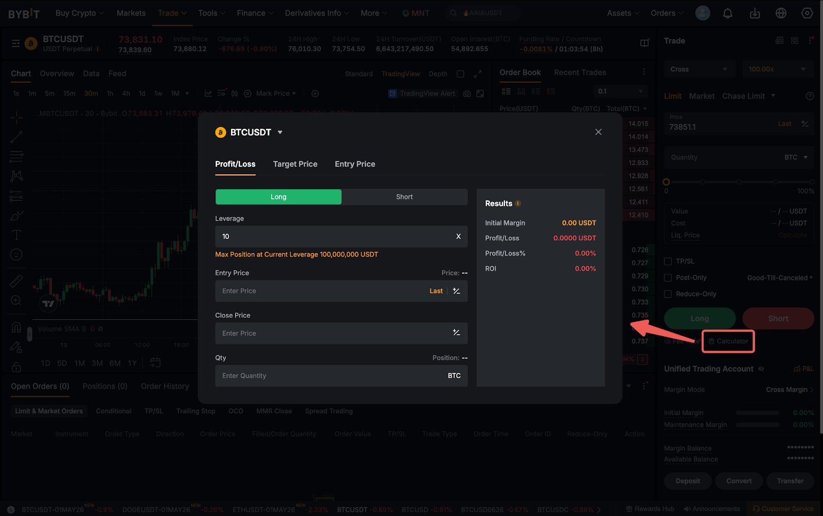 يمكن للمتداولين استخدام حاسبة Bybit لتحديد الأرباح والخسائر المقدرة، والسعر المستهدف، وسعر التصفية (للحسابات القياسية فقط)، ومتوسط سعر الدخول لعمليات التداول المحتملة. يمكنك الرجوع إلى حاسبة Bybit للحصول على المزيد من التفاصيل.