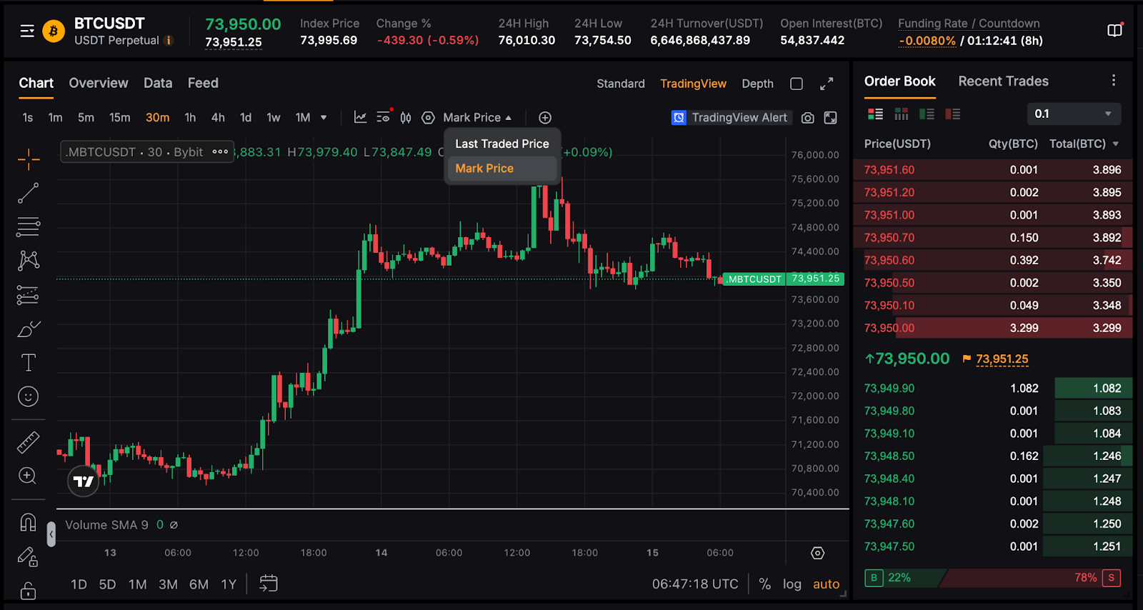 إليك نظرة عامة على الميزات المتاحة في صفحة تداول العقود الدائمة والعقود الآجلة لدى Bybit.