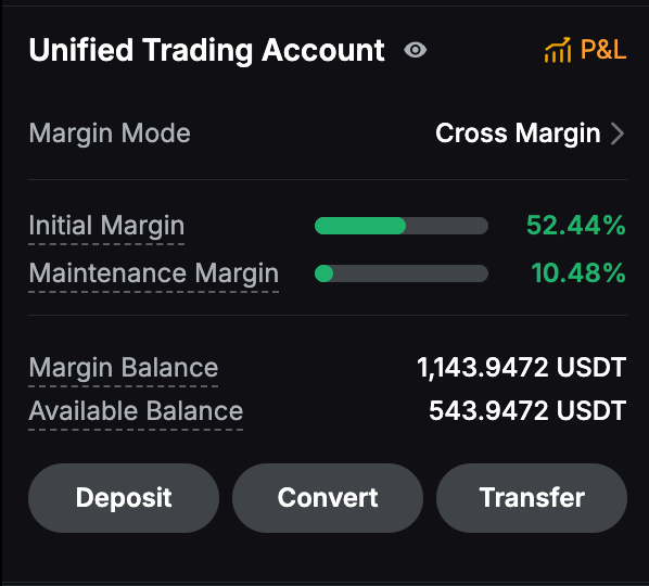 الأرباح والخسائر | يؤدي زر الأرباح والخسائر هذا إلى صفحة تحليل الأرباح والخسائر لحساب التداول الموحد (UTA) الخاص بك. في التطبيق، يمكنك التحقق من تحليل الأرباح والخسائر من صفحة أصول حساب التداول الموحد (UTA) الخاص بك. لمزيد من المعلومات، يرجى الرجوع إلى هنا. |