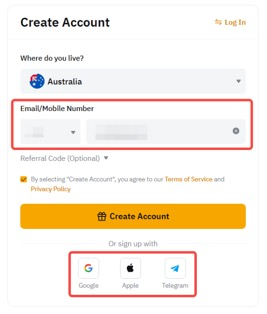 يمكنك أيضًا النقر على أزرار التسجيل باستخدام لإنشاء حساب Bybit الخاص بك بسهولة باستخدام:
