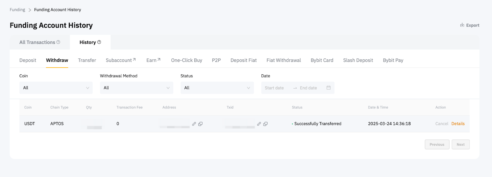 You can check your withdrawal status and details from Funding Account History → Withdraw.
