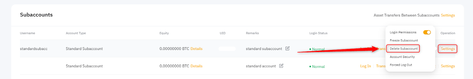 Main Account can perform 2-way transfers between the Main Account and all standard subaccounts created, as well as transfers between two subaccounts. Standard subaccounts can only perform one way transfer to the Main Account. For more details on how to transfer the assets, please refer to How to Get Started With a Standard Subaccount.