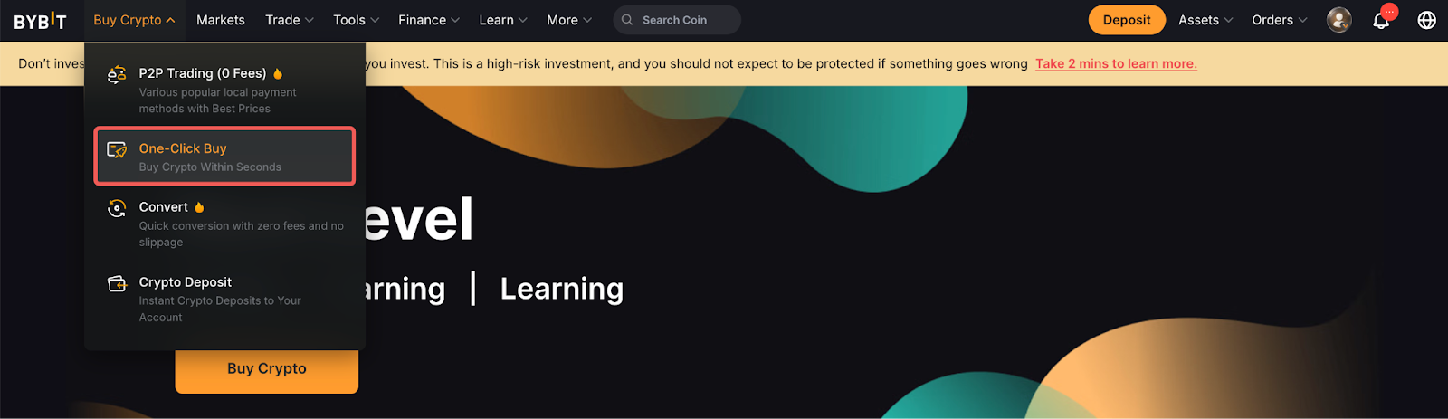 Step 1: Click on Buy Crypto → One-Click Buy on the top left corner of the navigation bar to enter the One-Click Buy page.