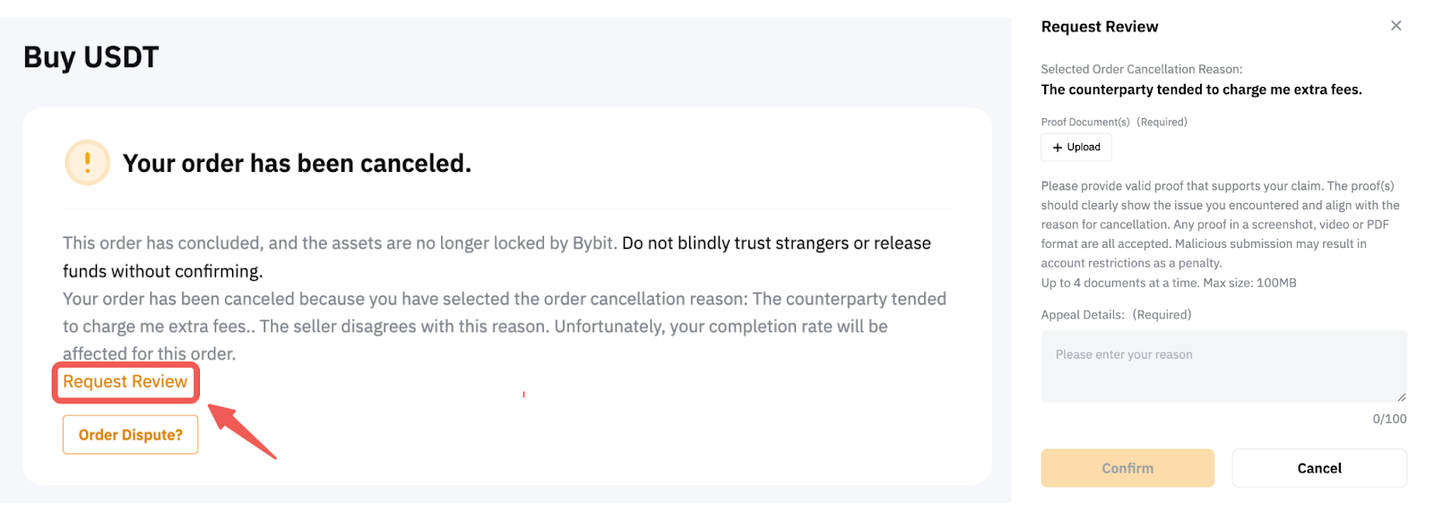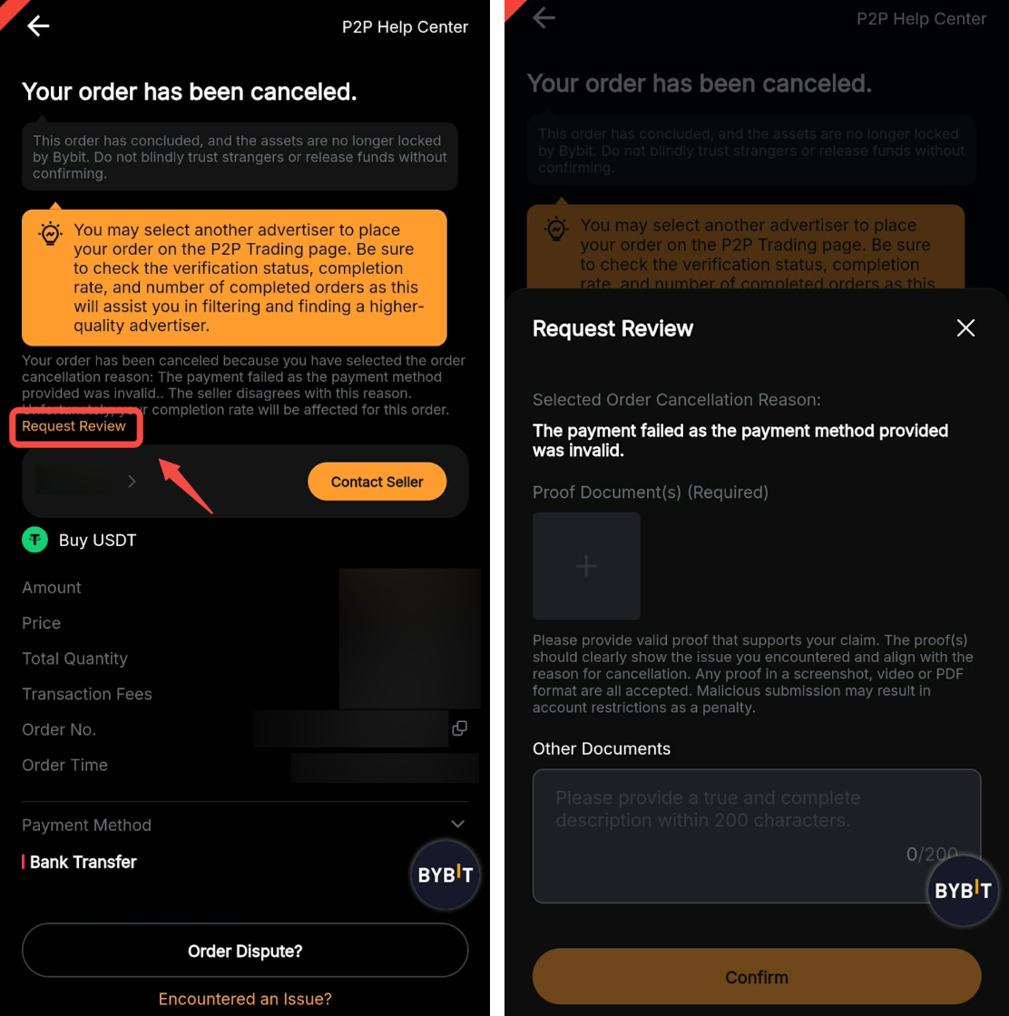 If you firmly believe the cancellation was due to the seller's fault, please submit an appeal by clicking Request Review and providing valid proof that supports your claim. The P2P Specialist will assist with your request within 1-2 working days.