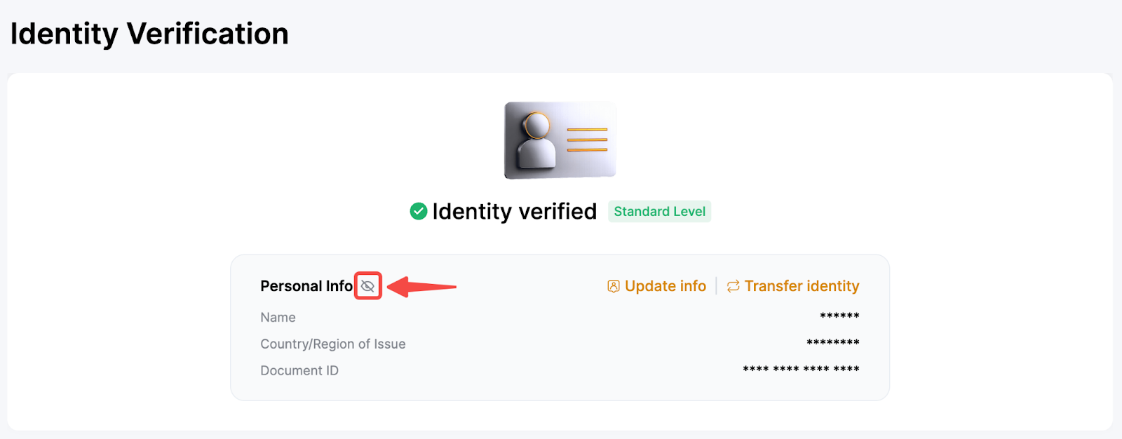 You can double-check your submitted information from the Identity Verification page. Click on the eye icon to view your information. Please note that you will need to enter your Google Authenticator code to view your information. Should there be any discrepancy, please reach out to our Customer Support by submitting a case here.