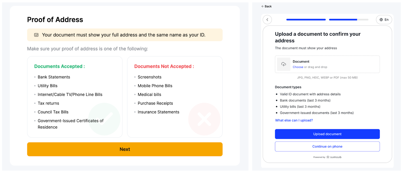 — Please make sure the document photo clearly shows your full name and date of birth.