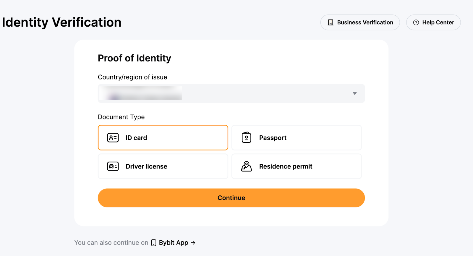 Step 3: Select the country or region that issued your ID, and your identity document type.