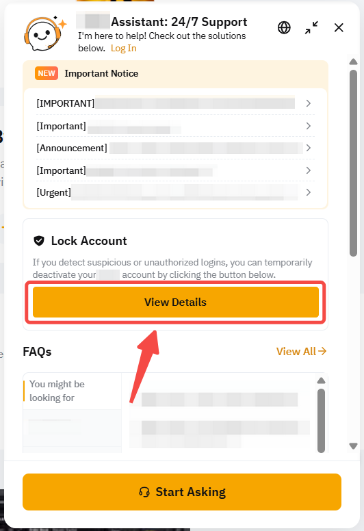 Note: If you're a phone-registered user or have lost access to your email, please reach out to our live chat service to immediately assist in freezing your account.