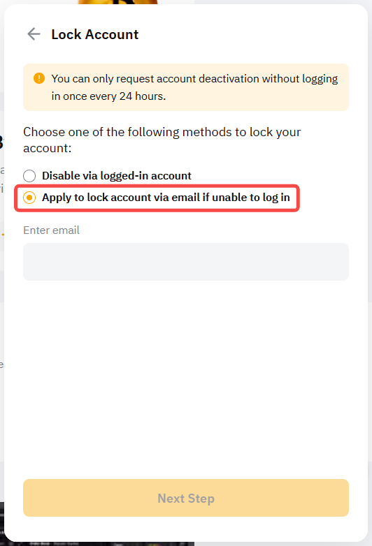 Step 3: Select Apply to lock account via email if unable to log in, and enter your email address.
