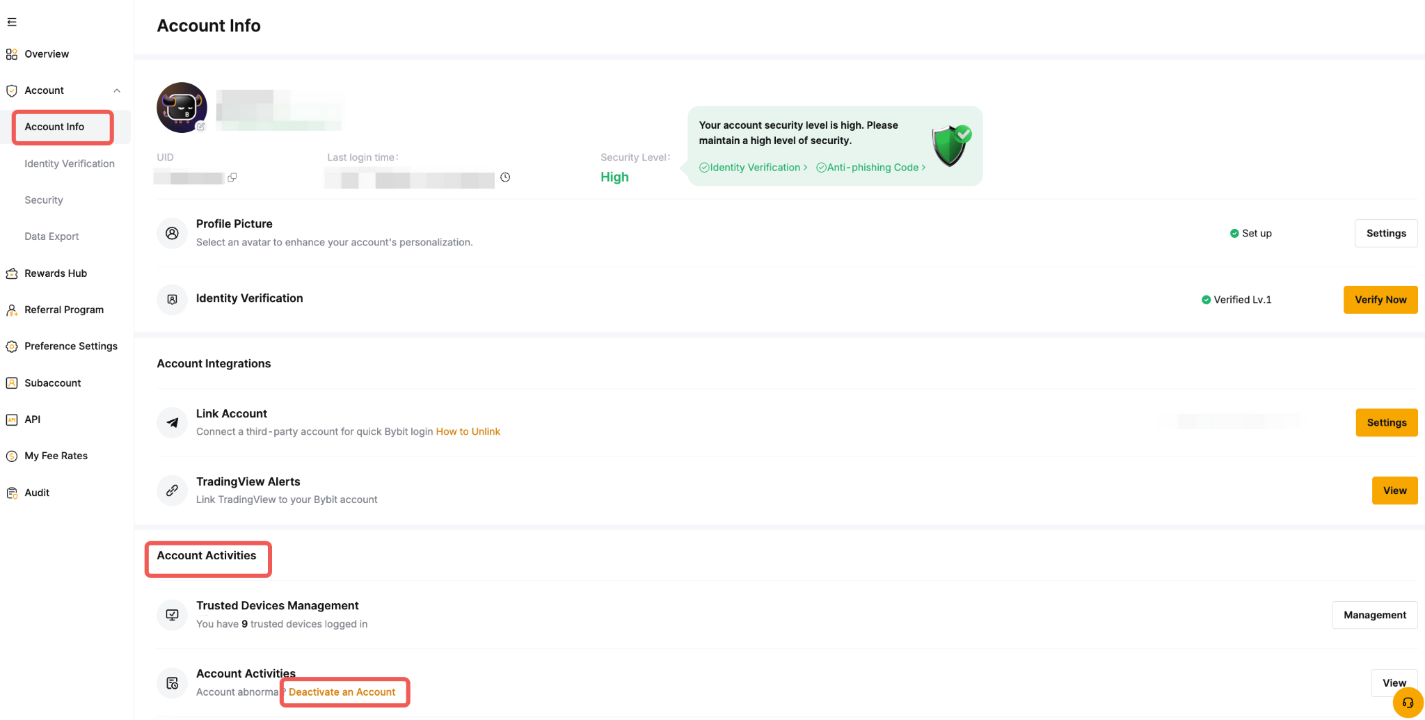 Bybit has launched a self-service account deactivation feature, which allows users to deactivate their accounts on their own via the Account page instead of sending account deactivation requests to Bybit customer support.