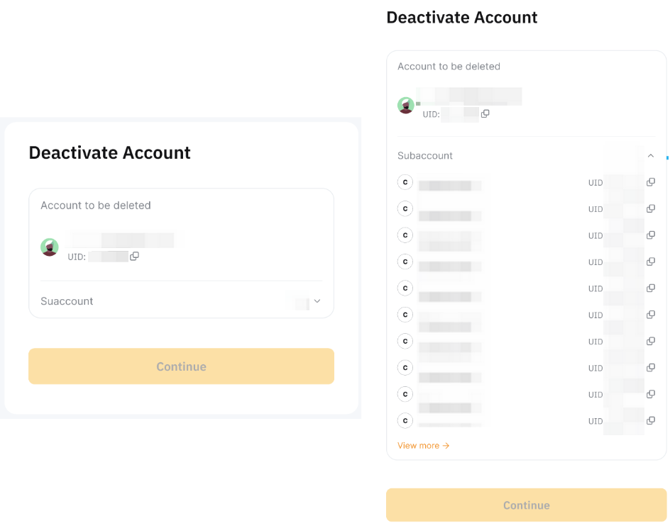 Step 3: Review and confirm the account and any associated subaccounts that should be deactivated.
