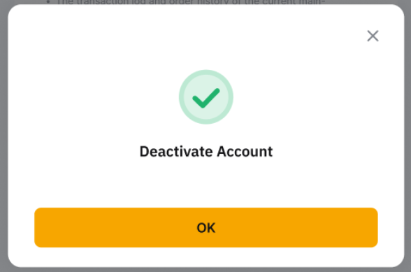 — You will not be able to log in to your Bybit account once you have confirmed account deactivation.