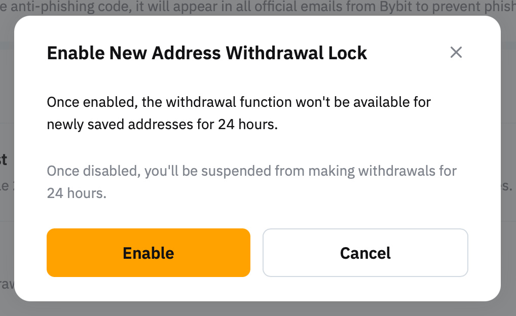 Step 2: A pop-up window will open for you to confirm that you want to enable the Enable 24-Hour Withdrawal Lock function. Click on Confirm.