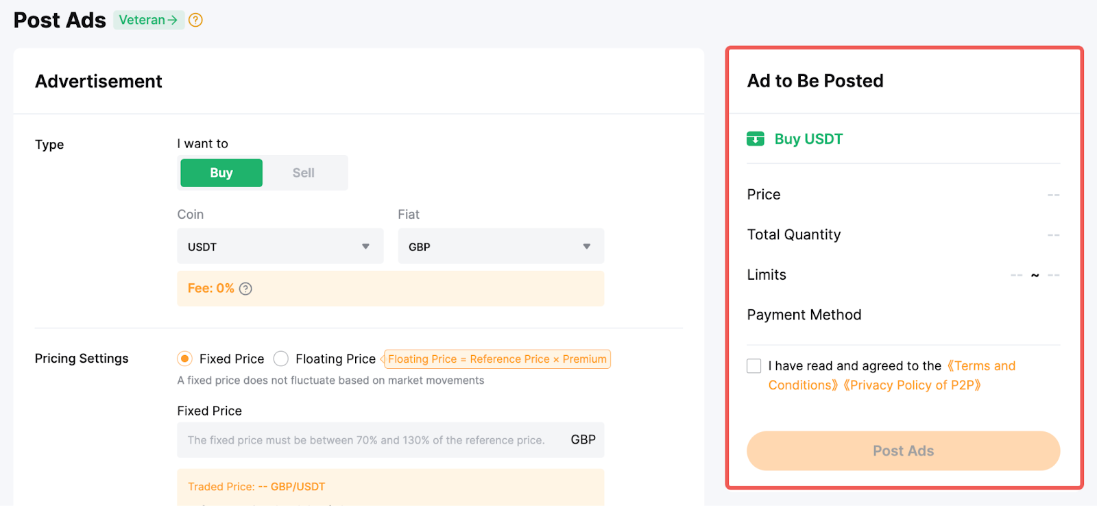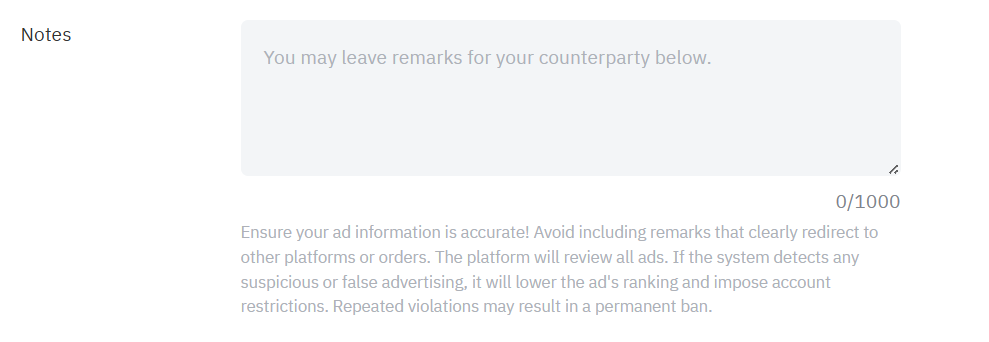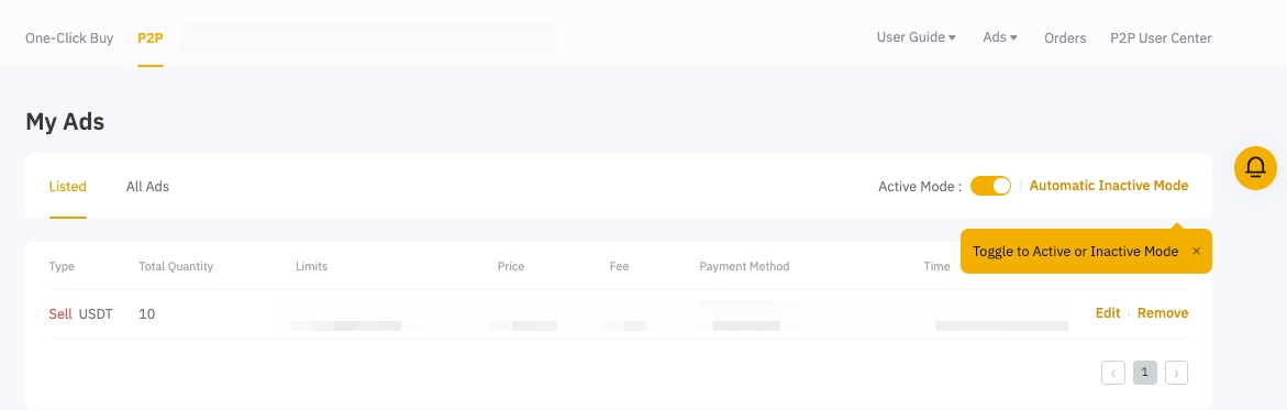 Congratulations! Your ad is now successfully listed. Please remember that advertisers are expected to be online and available to respond promptly to counterparties and engage in negotiations in a timely manner when the advertisement is in active mode. To learn more about managing the visibility of your advertising, please refer to this article.